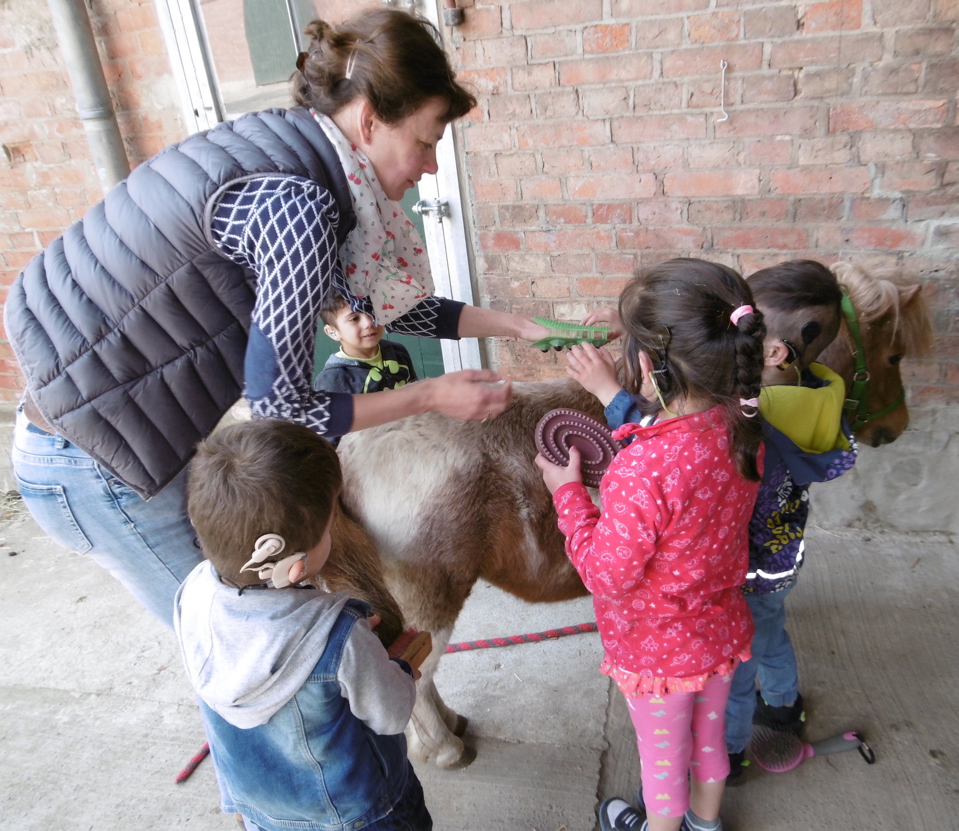 Ende April besuchten die Kindergartenkinder den Erlebnisbauernhof „Bauer Bues“ in Groß Denkte. Die Kinder konnten Bauernhoftiere kennenlernen, sehen, wie die Tiere leben und was sie fressen. Mit viel Spaß wurde mit dem großen Traktor sowie Spielzeugtreckern gefahren, auf dem Heuboden ausgiebig getobt und auf dem großen Hof gespielt.
