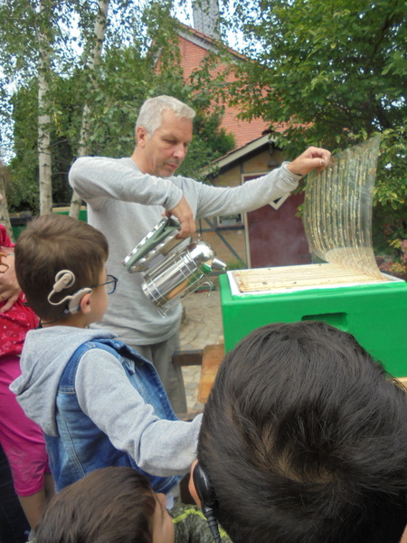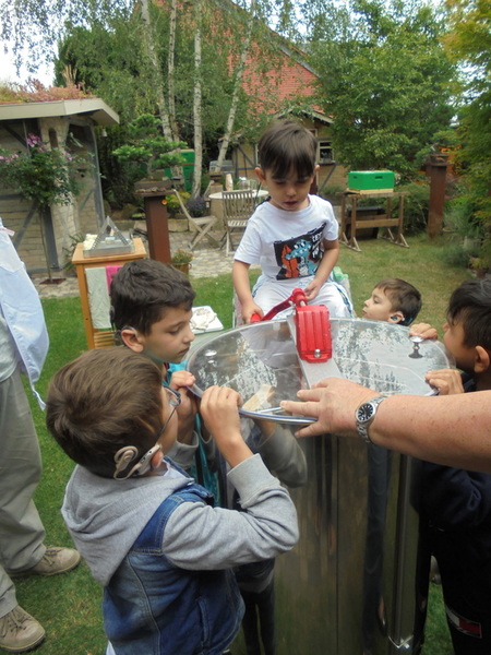 Zum Abschluss unseres mehrwöchigen Projekts „Die Welt der Insekten“ waren wir zu Besuch bei Imker Uwe Moczygemba. Dieser Ausflug bot den Kindern die Chance den Lebensraum der Bienen hautnah zu erleben, sowie die Gewinnung von Honig mitzuverfolgen und dabei tatkräftig an der Handschleuder mitzuhelfen. Zum Abschluss dieses aufregenden und interessanten Ausflugs erhielt jedes Kind ein Glas Honig.