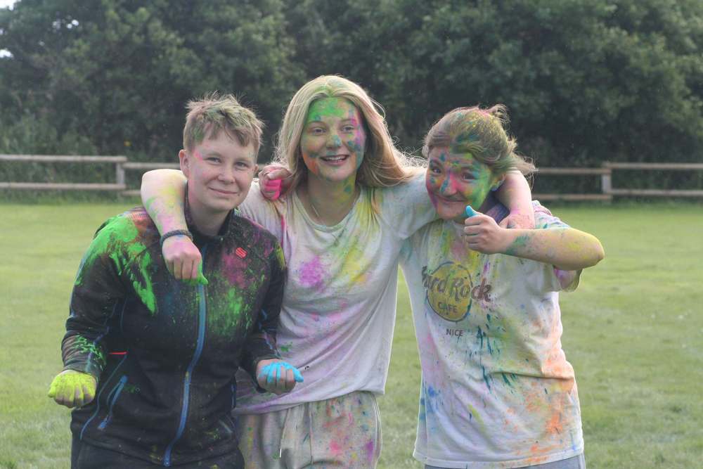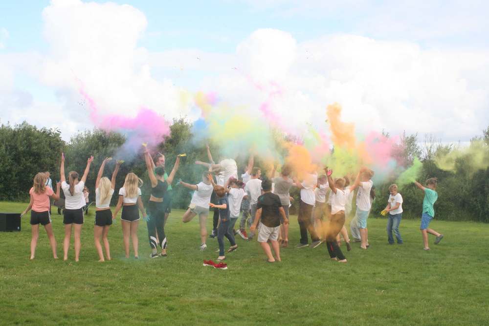 Den Abschluss bildete das „Holi Fest“, wo sich die Teilnehmer mit buntem Farbpulver einreiben und gegenseitig bewerfen. Keine Angst, die Farbe ging wieder ab.