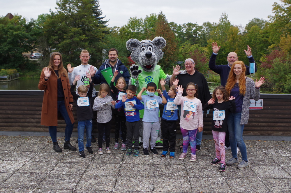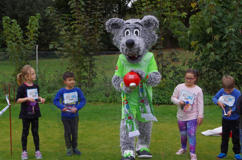Ein weiteres Highlight war die Schultüten-Übergabe durch Wölfi, das Maskottchen, unseres Netzwerkpartners VfL Wolfsburg, an unsere Einschulungskinder.