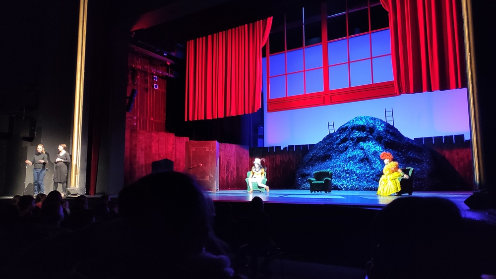 Wir thronten in den ersten Sitzreihen ganz vorn und hatten so beste Sicht auf das Geschehen auf der Bühne und den zwei Gebärdendolmetscherinnen, die uns beim Verstehen der Szenen unterstützten.