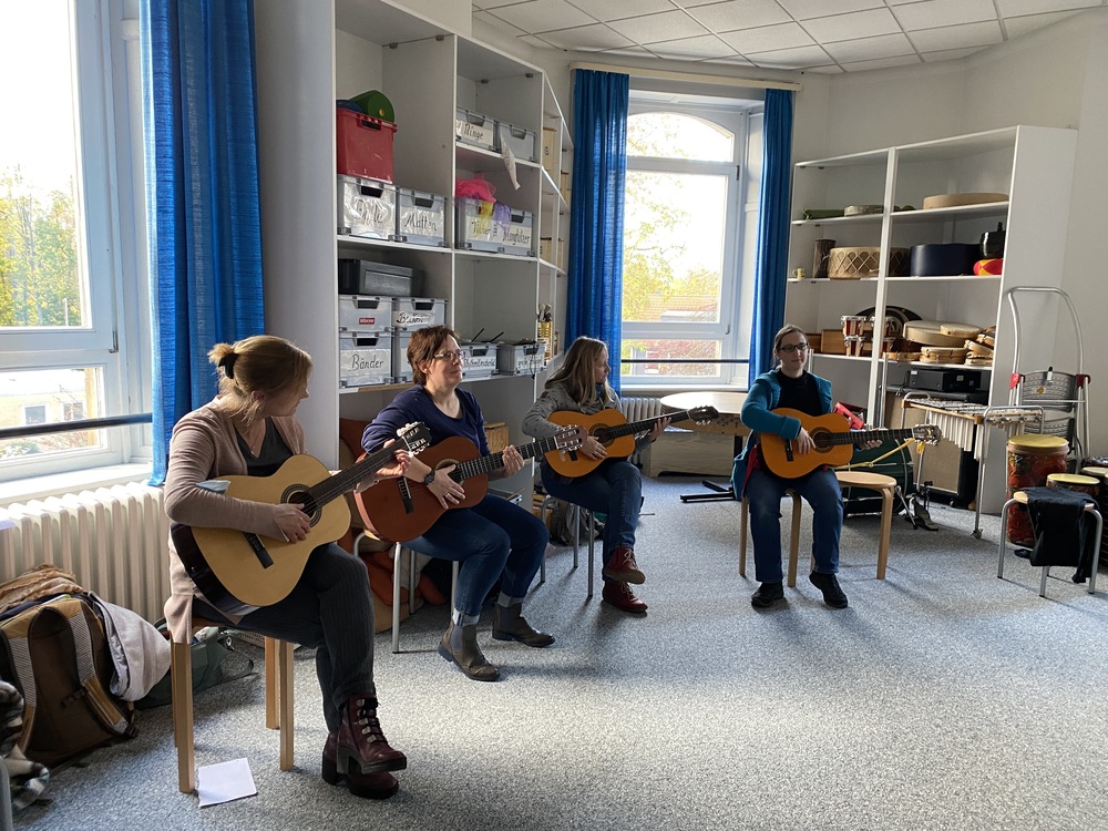 Auch die Erzieherinnen, Lehrerinnen und Lehrer musizierten am Nachmittag gemeinsam und probierten Verschiedenes aus.