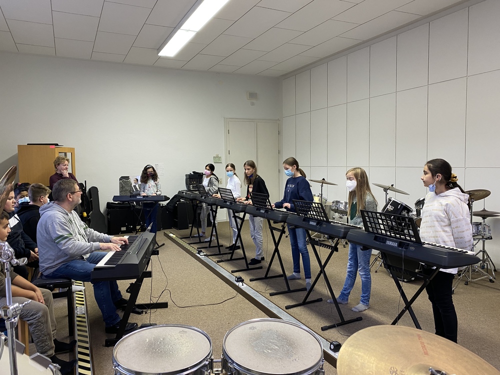 Alexander Blume aus Eisenach (https://www.alexanderblume.de/) machte mit seinem Projekt „Musik erleben“ Musik nicht nur hörbar, sondern die Schwingungen und Impulse der Musik für die Kinder auch spürbar. Es wurde getanzt, mit dem eigenen Körper Musik gemacht und mit Musik experimentiert. Die Kinder probierten die Gitarre, Keyboard und Schlagzeug aus. Sie konnten eigene Melodien auf dem Keyboard spielen und tolle Erfahrungen machen. Durch verschiedene Übungen waren die Kinder auf ganz unterschiedliche Weise kreativ und bewiesen ein gutes Rhythmusgefühl.