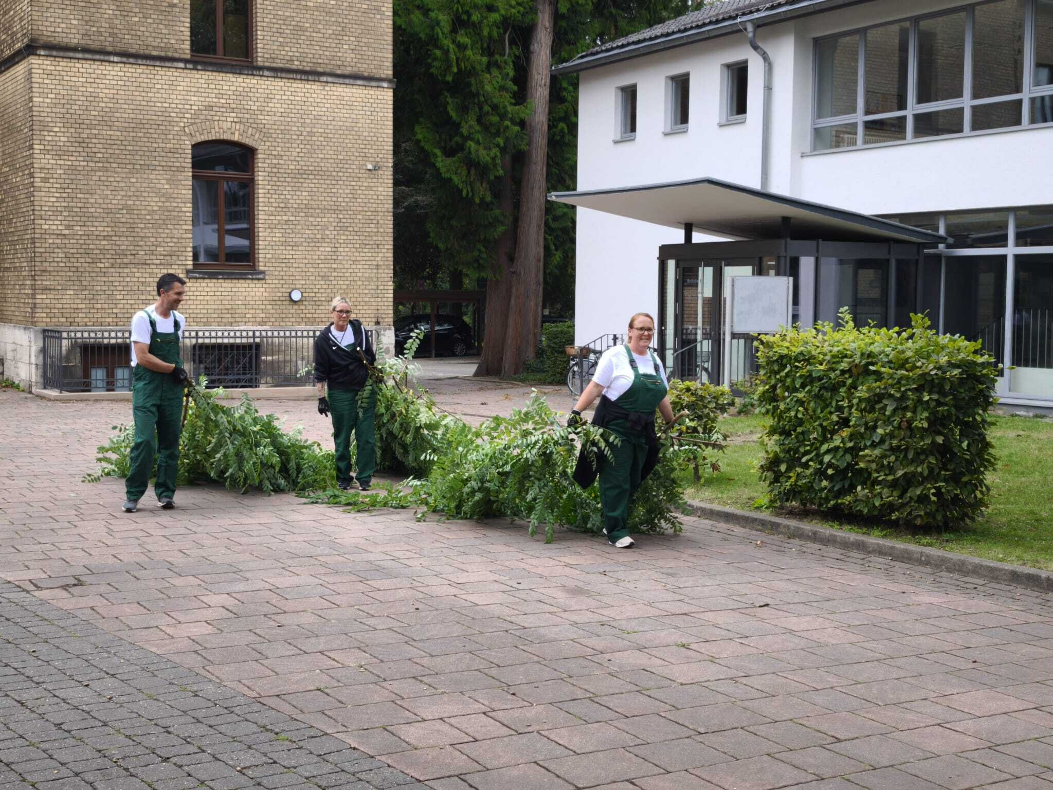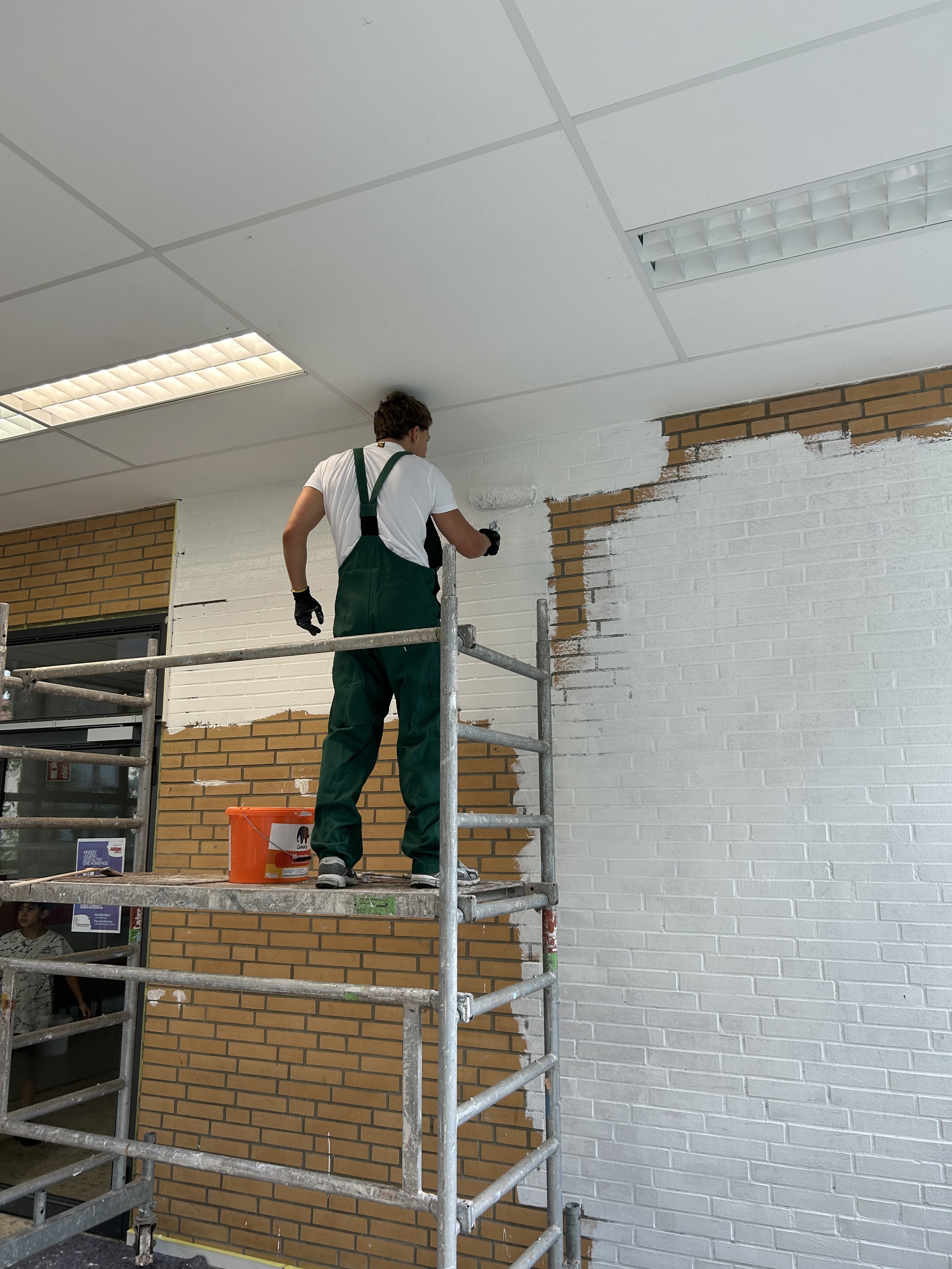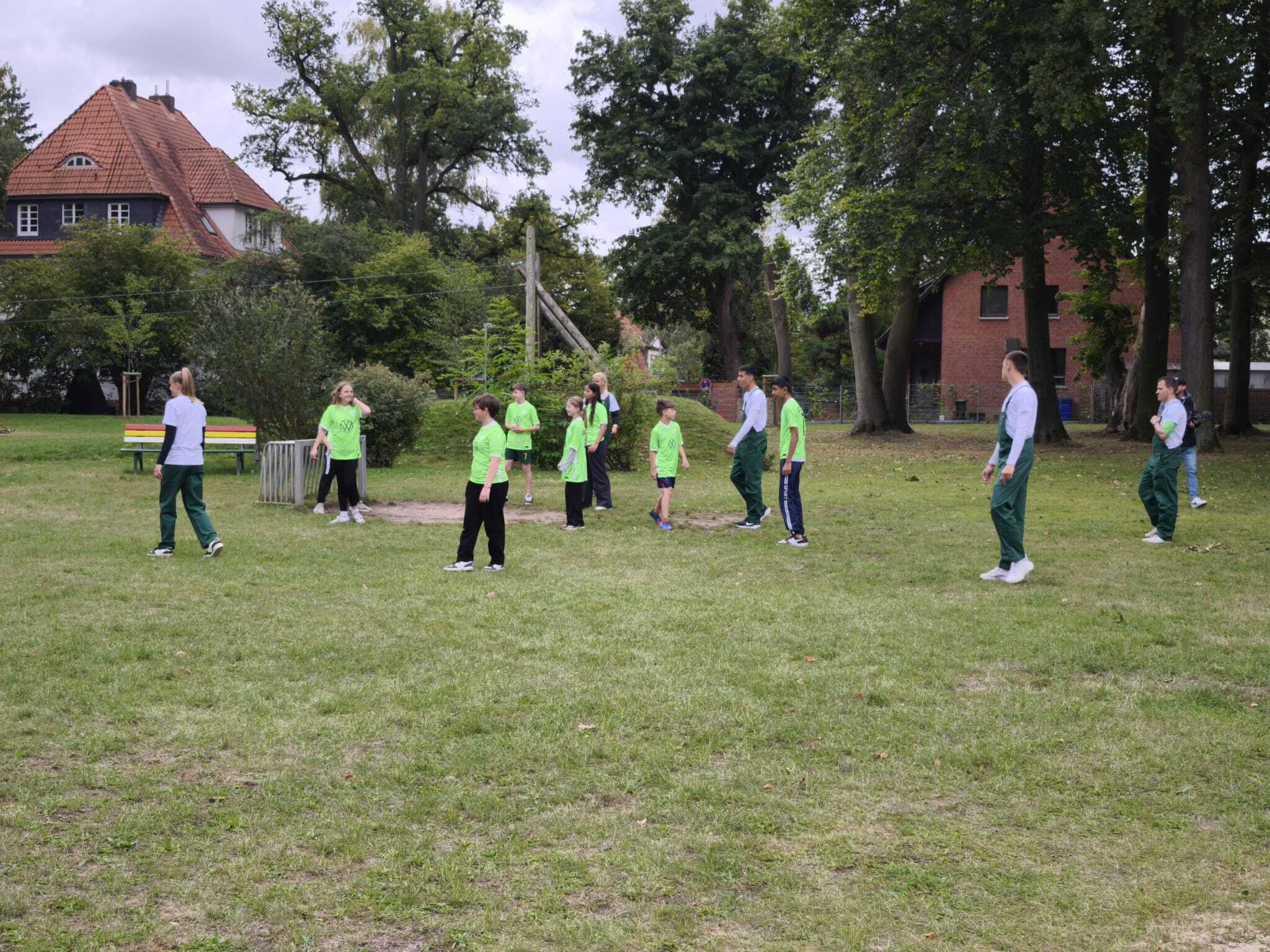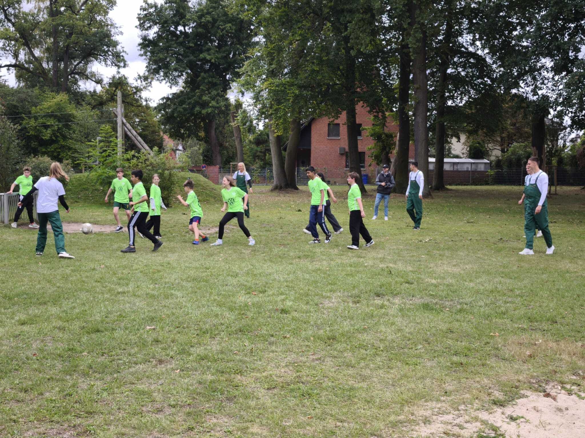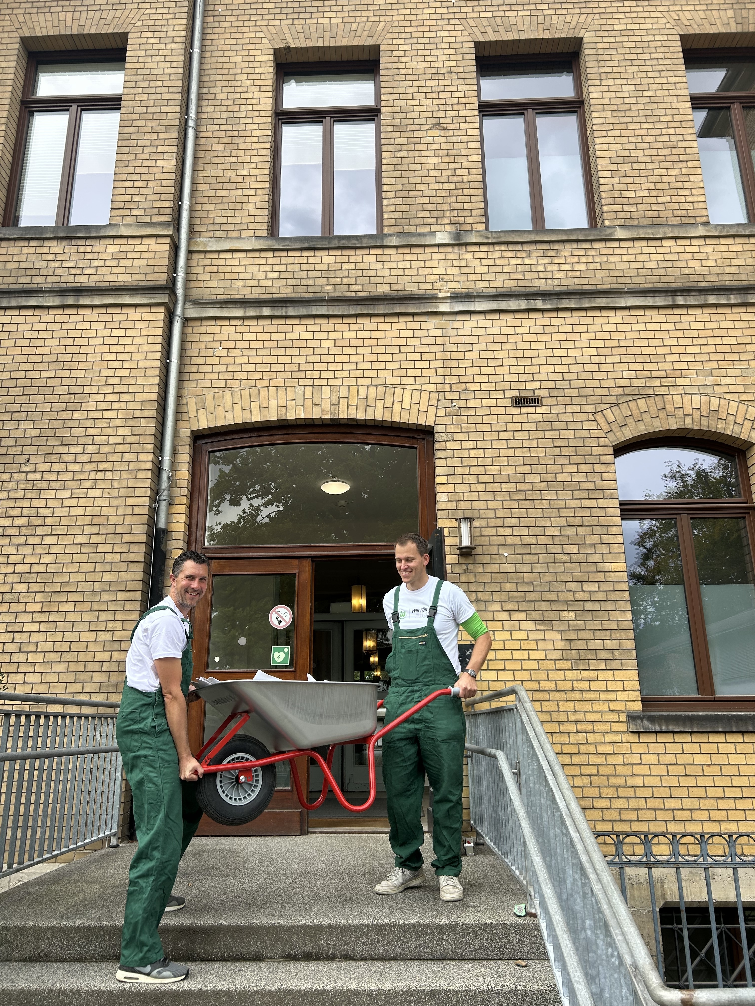 Am 17.09.25 kamen insgesamt 20 MitarbeiterInnen des VfL Wolfsburg im Rahmen des WIR-FÜR-EUCH-TAGES in das Landesbildungszentrum in Braunschweig, um fleißig anzupacken. Auch Profi- Spielerinnen und Spieler waren vor Ort und arbeiteten sehr emsig auf dem Gelände des LBZH. Sie standen auch für Foto- und Autogrammwünsche zur Verfügung. Zusätzlich war Wölfi zur Freude der SchülerInnen in der Schule und spielte gemeinsam mit den Kindern Fußball. Auch am Nachmittag wurde mit den Internatskindern eine Spieleinheit angeboten. Viel wurde an diesem Tag arbeitstechnisch umgesetzt: Die Pausenhalle und Kellerräume erhielten einen schönen neuen Anstrich, diverse Pflege-, Aufräum-und Reinungstätigkeiten, sowie 60 kg Kartoffeln schälen.
