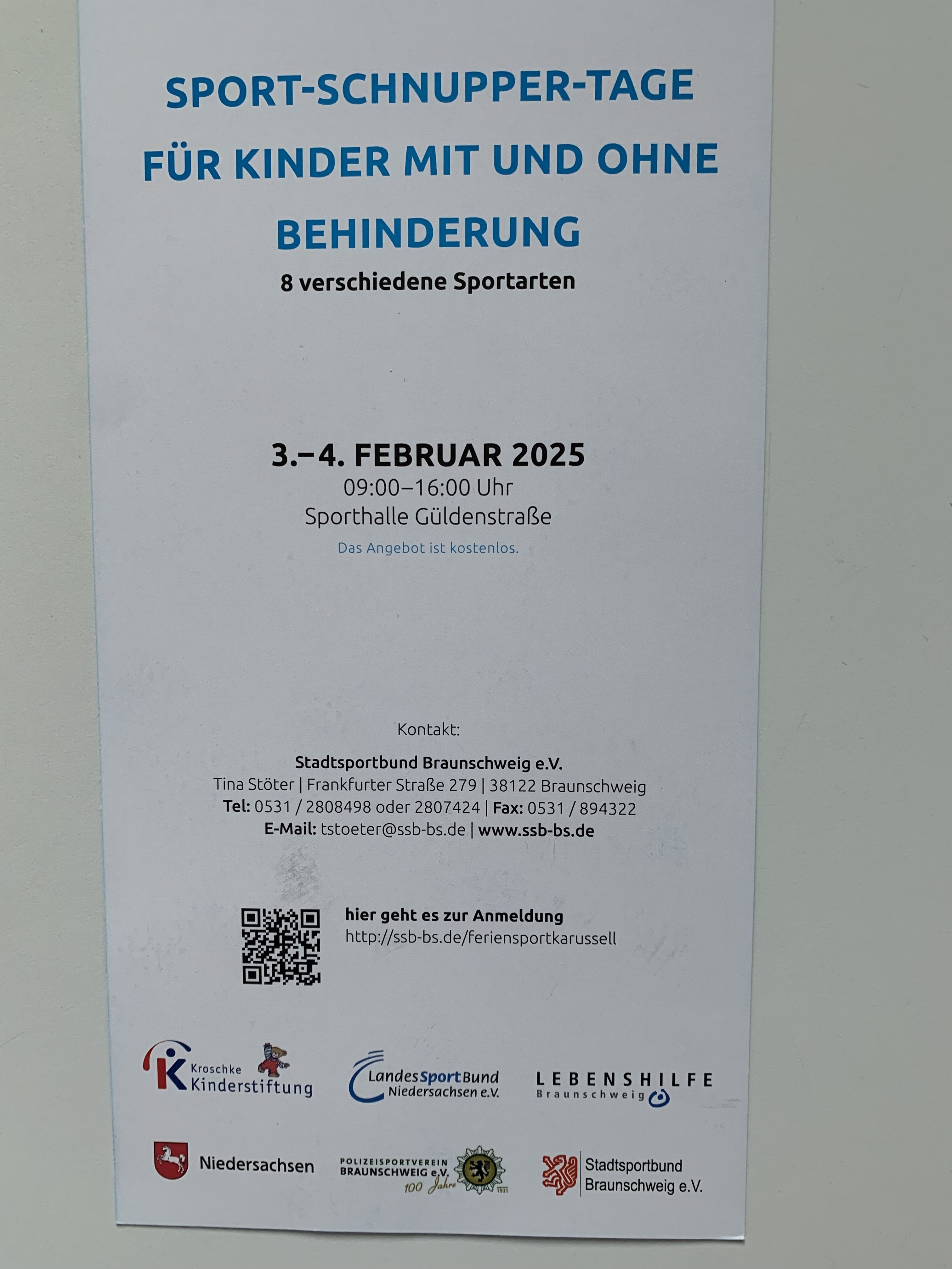 Das beliebte Ferien-Sport-Karussell des Stadtsportbundes Braunschweig wurde jetzt 2025 erstmalig ausdrücklich auch für Kinder mit Beeinträchtigung angeboten. Auch SchülerInnen des Landesbildungszentrums für Hörgeschädigte Braunschweig waren während der Zeugnisferien mit am Start. Das LBZH Braunschweig ist selbstverständlich Kooperationspartner dieses Projektes.