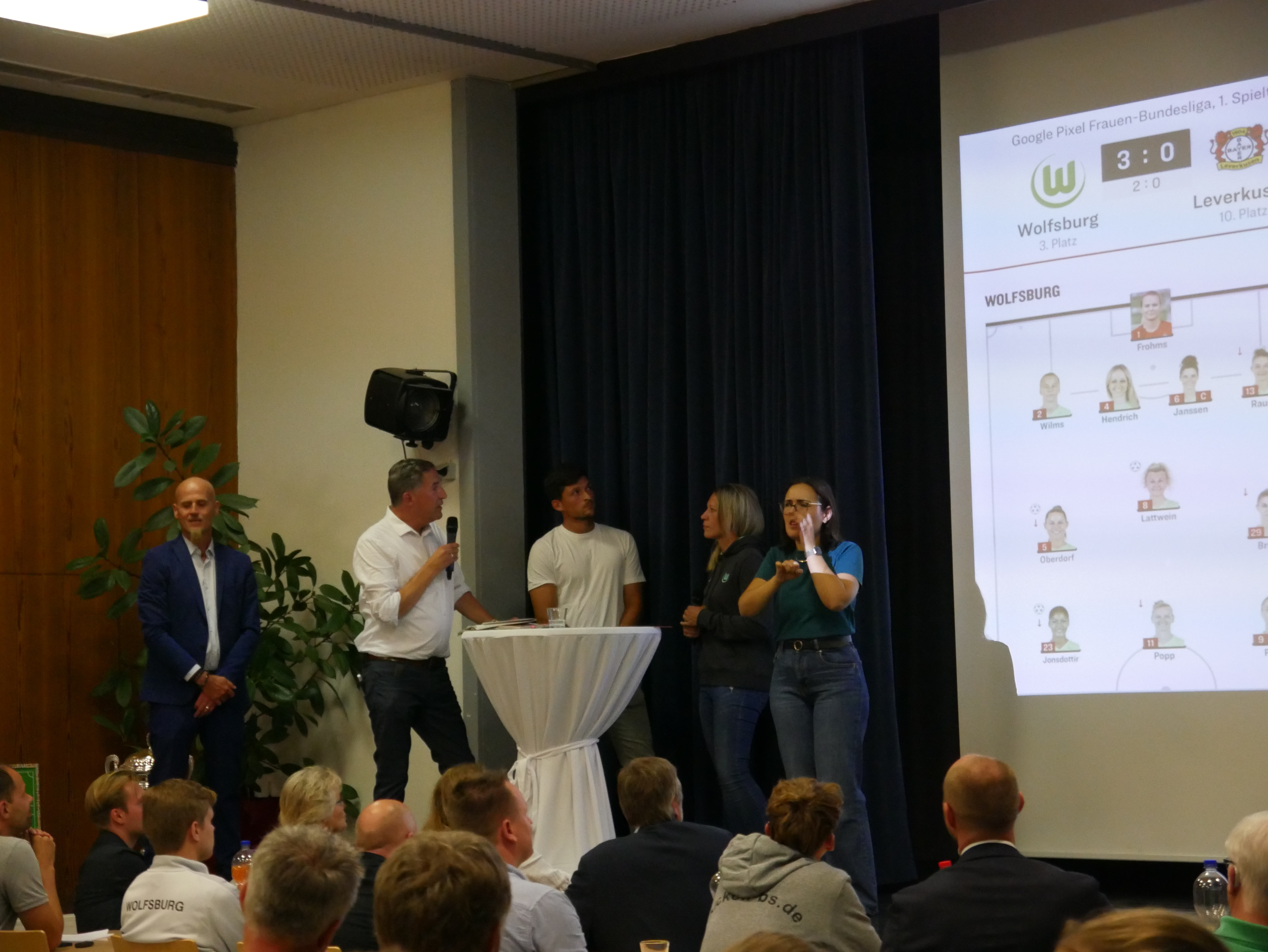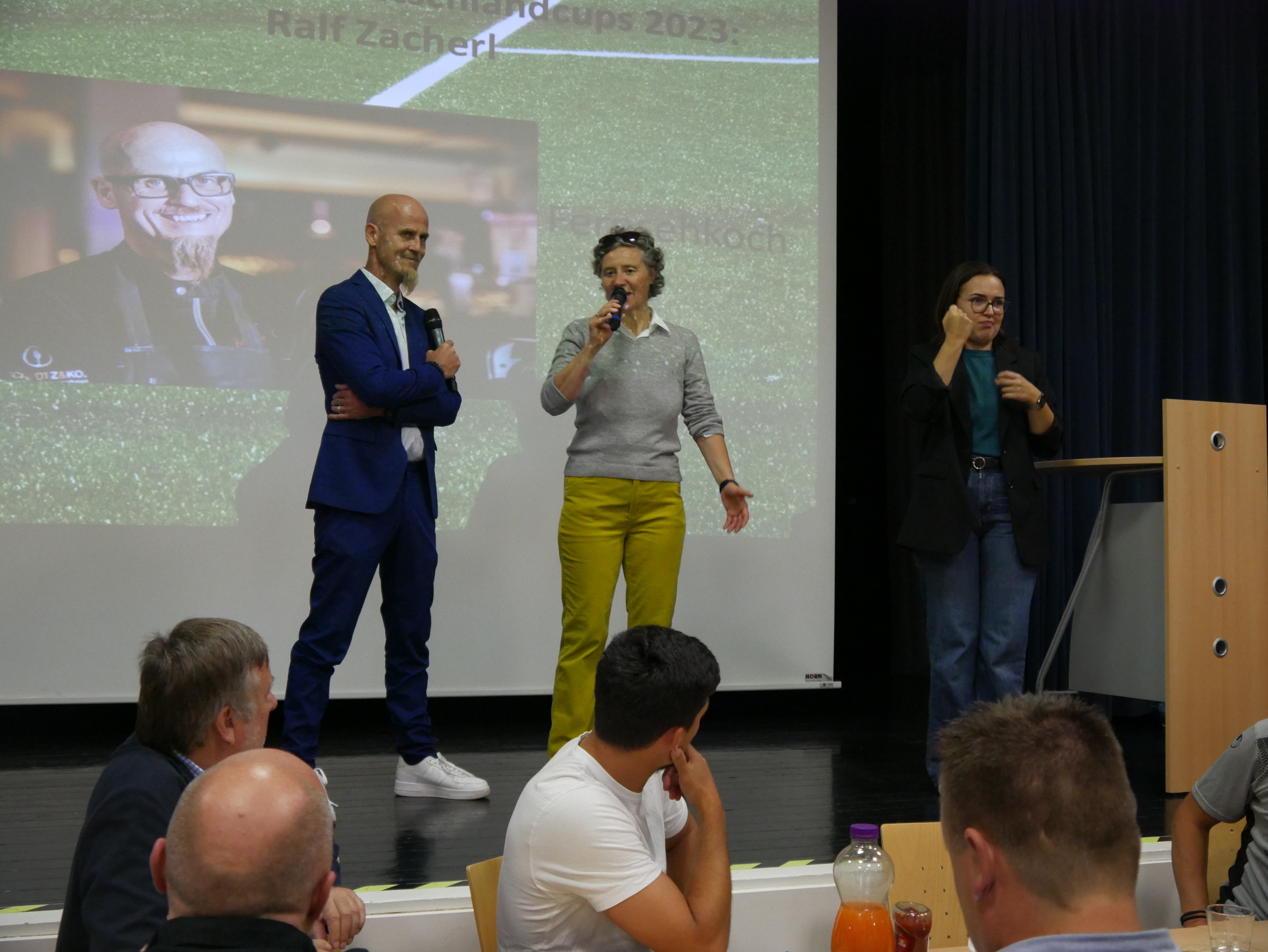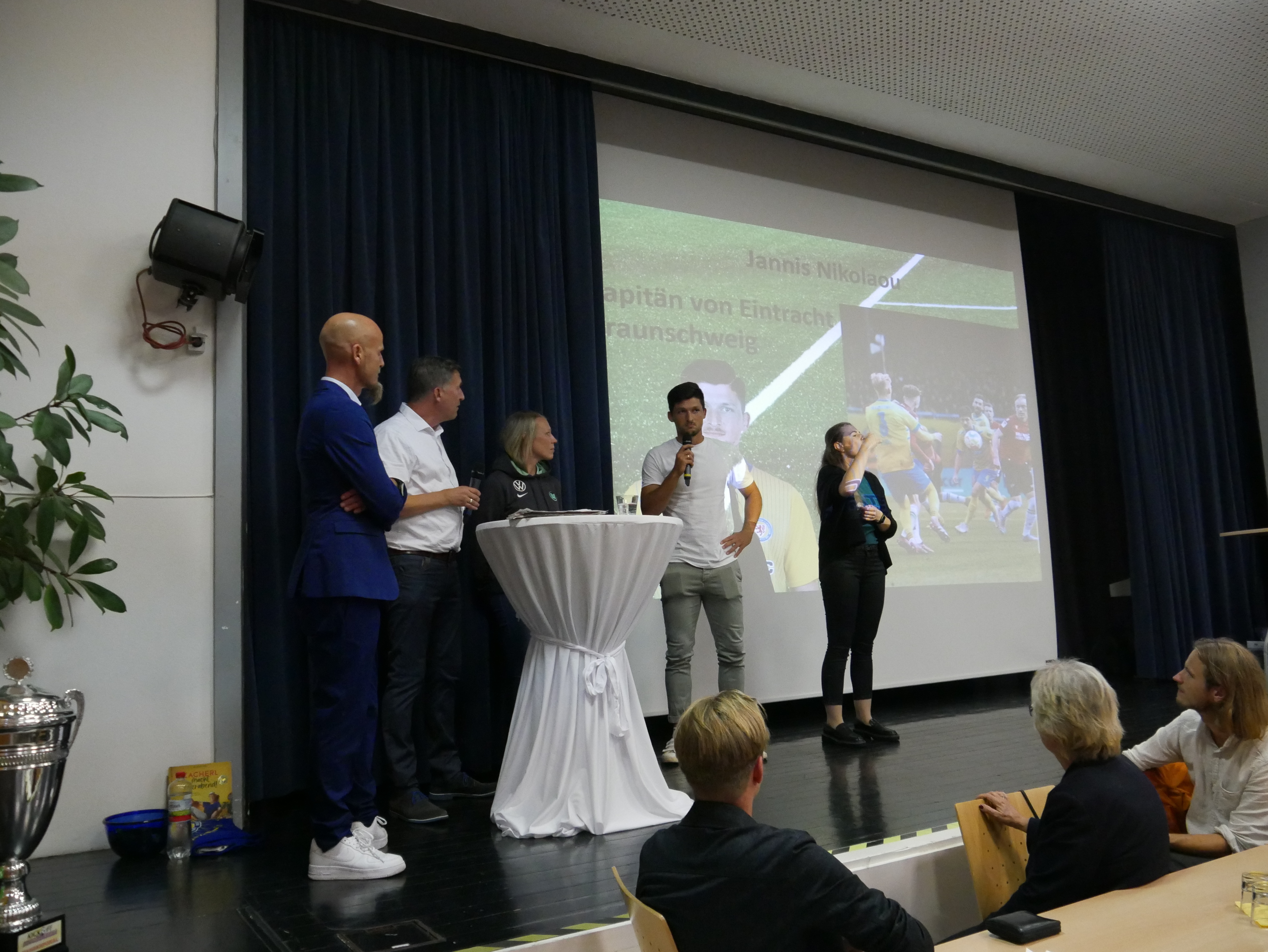 Frau Ihbe, die Bürgermeisterin der Stadt Braunschweig, sprach Grußworte. Anschließend wurde der Schirmherr der Veranstaltung, der deutschlandweit bekannte Fernsehkoch Ralf Zacherl auf die Bühne gebeten, der im Anschluss auch für ein unterhaltsames Interview auf der Bühne gerne bereit war. An dem Interview nahmen auch zwei Überraschungsgäste teil, Kristin Demann, Profifußballerin vom VfL Wolfsburg sowie Jannis Nikolaou, Mannschaftskapitän von Eintracht Braunschweig.