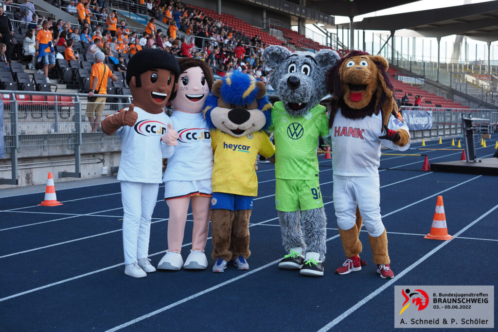 Am Freitag bei der Eröffnungsfeier im Eintracht-Stadion, stellte das Landesbildungszentrum (28!) Einlaufkinder für den Fußball-Länder-Wettkampf und organsierte das Maskottchen-Rennen.