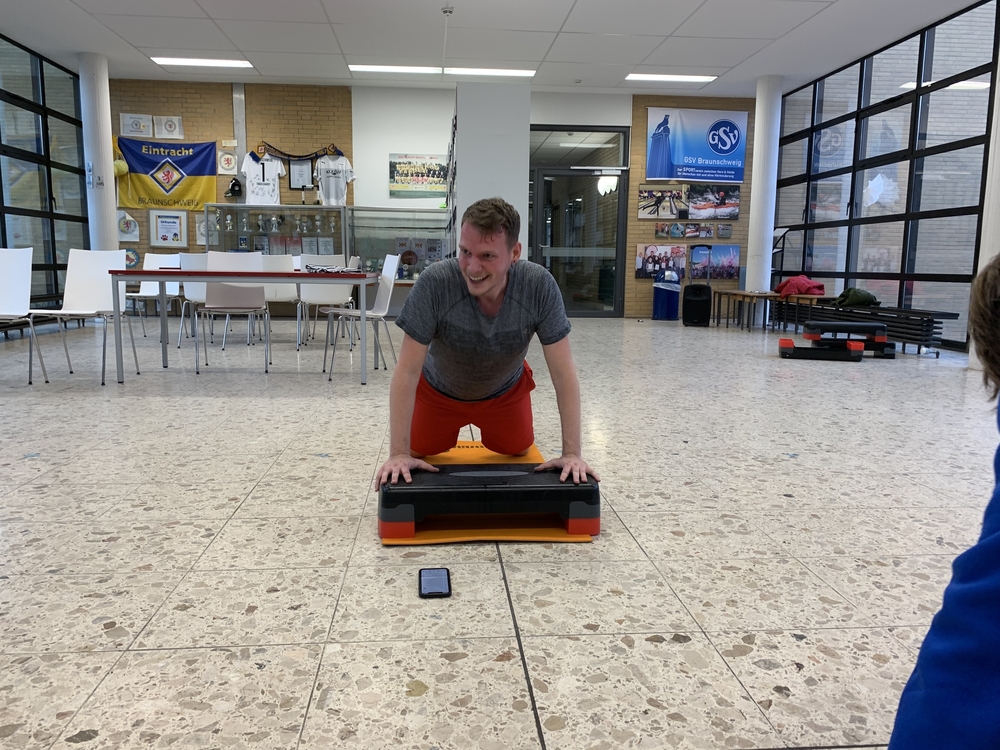 Seit einigen Wochen beschäftigen sich die 9. und 10. Klassen des LBZH BS mit dem Schwerpunkt Step Aerobic im Sportunterricht. Hierbei studierten die SchülerInnen eigene Choreografien mit der Sportlehrerin Yvonne Campehl ein. Den krönenden Abschluss dieser Unterrichtseinheiten bildete die Sportstunde am 18.12.23. Hier besuchte uns Eric Vogel, Step Aerobic-Trainer und Lehrer für Mathematik und Elektrotechnik an der Heinrich-Büssing- Schule. Gemeinsam mit ihm führten die SchülerInnen eine Mischung aus klassischer Gymnastik, verschiedenen Tanzelementen und Kraftübungen durch. Den Kontakt stellte unser Sportlehrer Daniel Treutler her. Alle SchülerInnen hatten viel Spaß bei dieser besonderen Sportstunde, die von den Lehrkräften Campehl, Treutler und Keil als Weihnachtsgeschenk für die SchülerInnen privat finanziert wurde. Das LBZH BS bedankt sich bei Eric Vogel für seinen Besuch