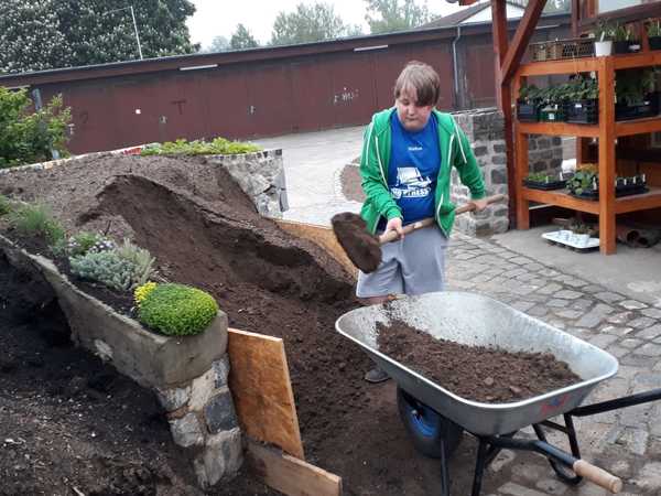 Die Internatsschüler und –Schülerinnen bauten im Sommer gemeinsam mit den Erziehern des Internats alte Holzpaletten zu mobilen Hochbeeten um und bepflanzten diese Beete eigenständig mit Kräutern und Blumen.
